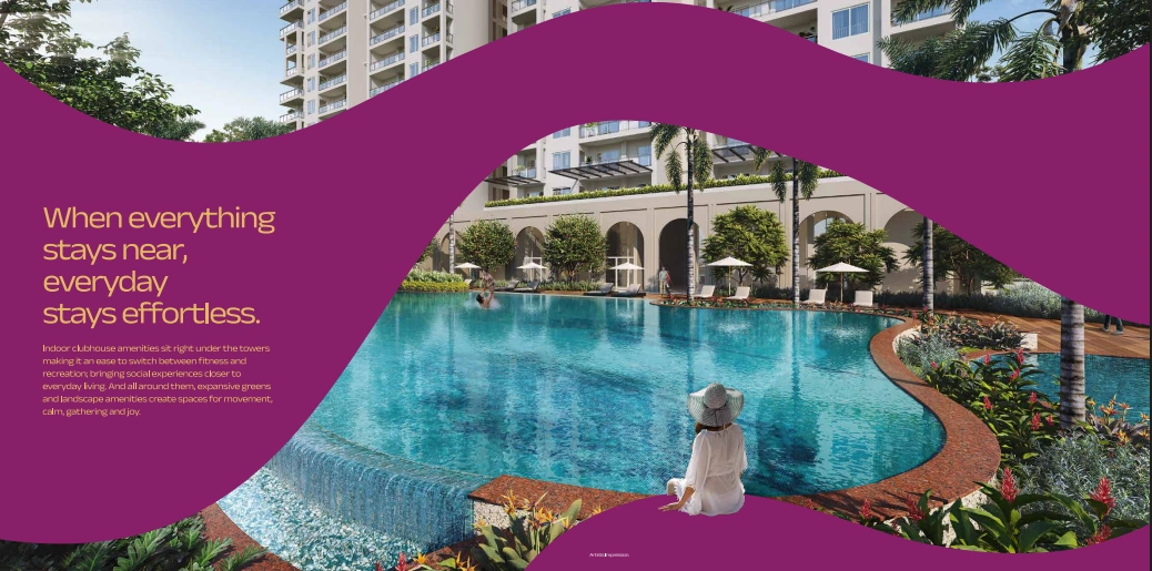 Amenities are among the strongest in this segment, with 40+ lifestyle features, including an infinity-edge swimming pool, gym, spa, co-working lounge, indoor sports courts, kids’ zones, jogging tracks, celebration lawns, and serene green pockets. Wellness-focused spaces like yoga decks, Jacuzzis, and landscaped courtyards help create a calm and balanced environment.