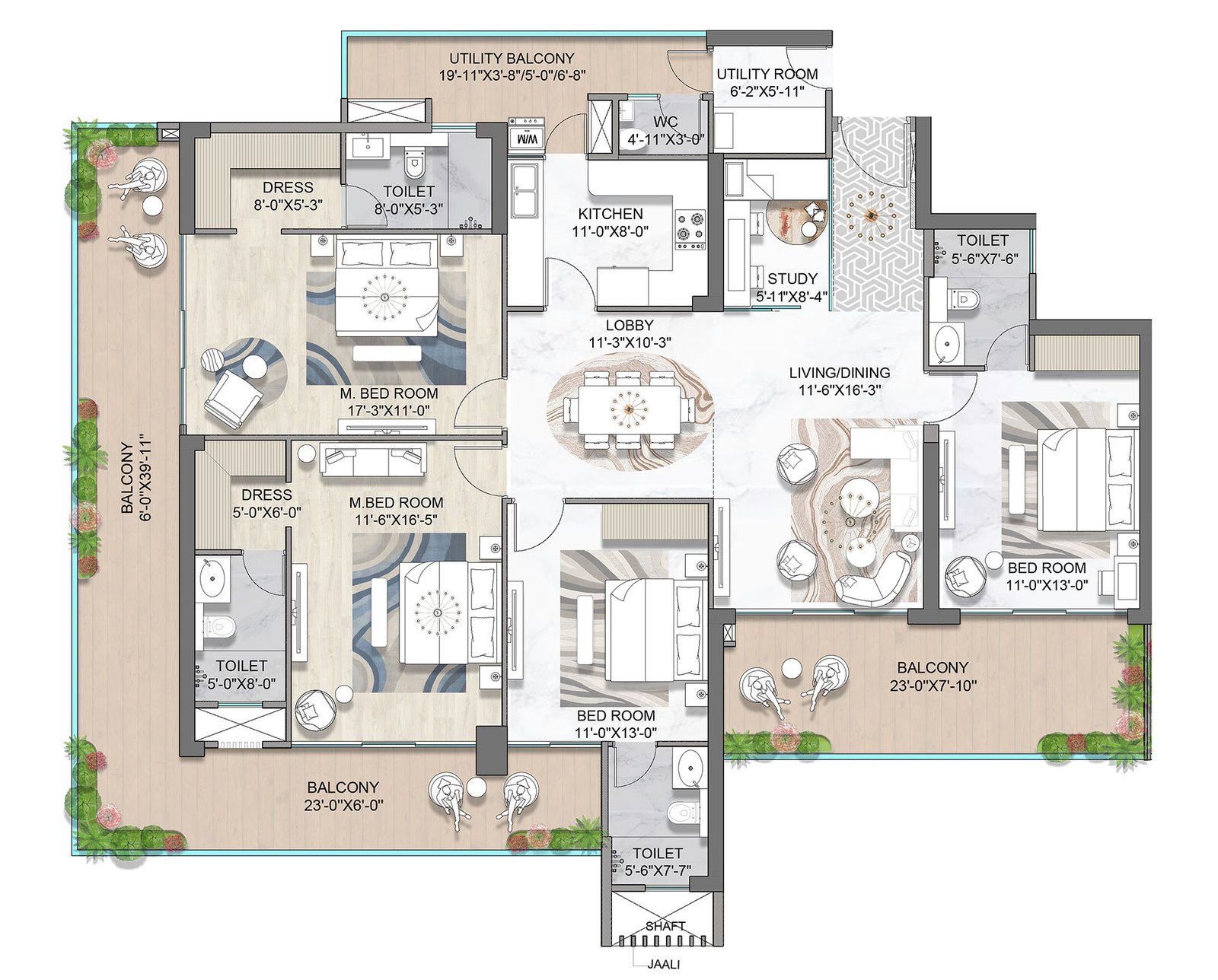 Apartments (Skyline View): 2750 / 2990 / 3015 sq.ft.