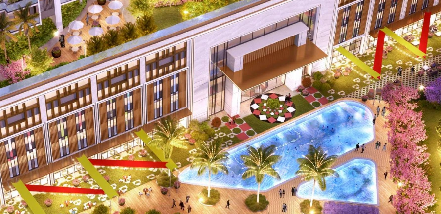 One of the strongest highlights of SATYA Levante Residences is its grand podium lifestyle. The central podium has lush landscape zones, water features, kids’ play pockets, outdoor seating, yoga decks, a festival plaza, and a large swimming pool. It also includes courts for basketball and multi-sports, making it perfect for active living.