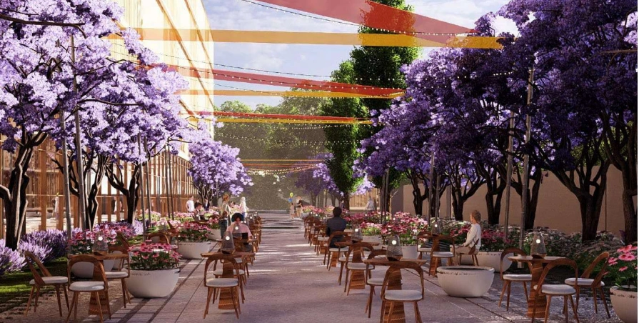 ✔ Festival plaza, café zones