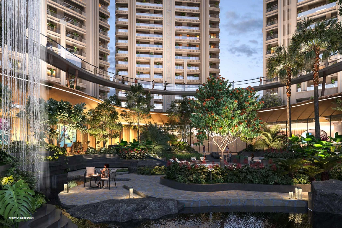 The heart of the project is a 1.75 lakh sq.ft. luxury clubhouse. It includes dining, spa, gym, pools, sports courts, workspaces, and leisure zones. Outdoor spaces offer jogging tracks, play areas, and themed gardens.