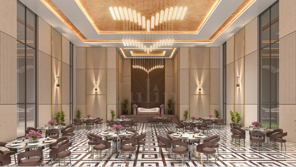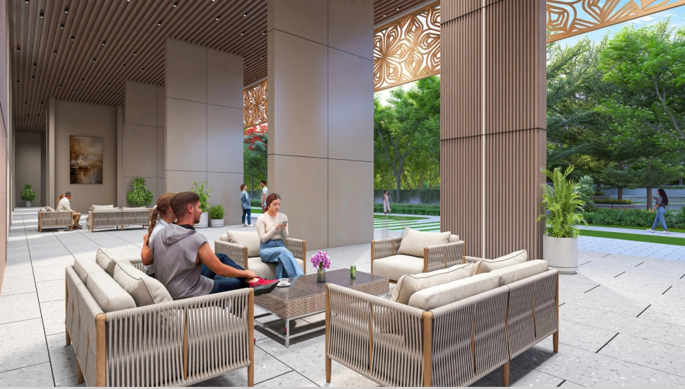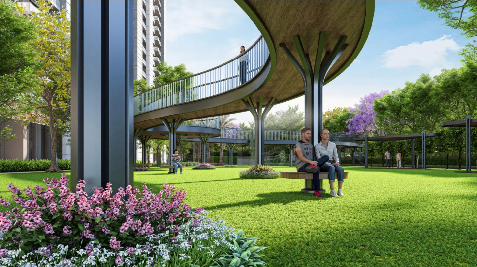 The project is planned with world-class design, a grand arrival experience, and long stretches of landscaped greens. Tulip Melrose includes premium lifestyle features like the SkyHub, an exclusive rooftop zone with an infinity pool, sky lounge, yoga deck, and indoor facilities. The ground-level clubhouse, sports courts, kids play zones, and open gardens create a complete community experience.